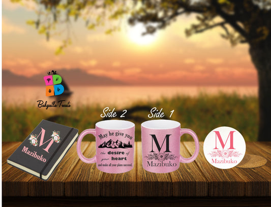 Personalized Glitter Cup & Notebook Gift Combo